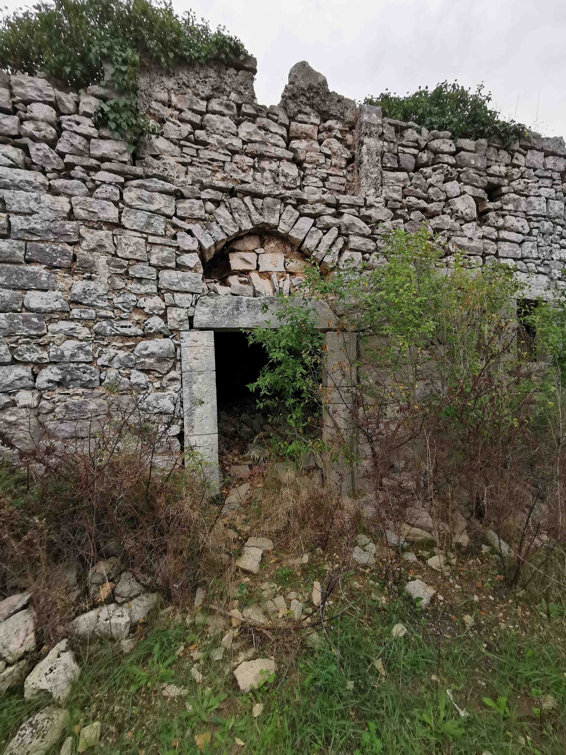 L’abbazia, attualmente di proprietà comunale, è circondata da possedimenti privati, coltivati a grano, frutta e verdura. Della grancia benedettina ad oggi pochi sono gli elementi riconoscibili, in quanto buona parte del complesso è fagocitato dalla vegetazione che nel tempo è cresciuta. Il prospetto nord, probabilmente quello principale, si presenta di forma rettangolare, costruito interamente in pietra da blocchi e bozze allettati secondo filari orizzontali irregolari. Il prospetto a circa metà della sua lunghezza è segnato da una linea di demarcazione verticale, che sembra indicare la presenza di due strutture distinte e non coeve. A sinistra è presente un portale d’ingresso definito da due piedritti costituiti da tre blocchi di diverse dimensioni ed un elemento monolitico come architrave. Al di sopra dello stesso architrave si colloca un arco di scarico. Al di sopra della muratura è presente in sottoquadro un accenno di spicco murario, è possibile ipotizzare si tratti di un piccolo campanile a vela. Pertanto è ipotizzabile che la struttura alla sinistra si identifichi nella originaria chiesa di Sant’Angelo . Sul lato sud-est si può ipotizzare la presenta di uno spiazzo scoperto più simile a un hortus conclusus.