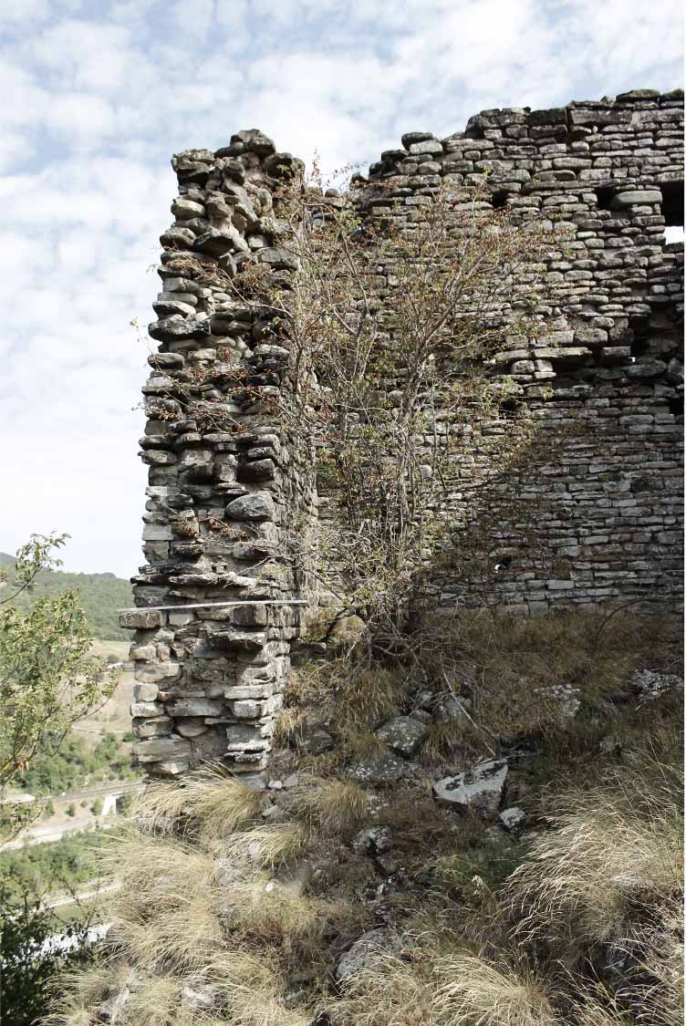 Oggi rimangono alcuni ruderi che lasciano intuire la sua passata dimensione: la torre in alto, resti della porta d’ingresso sopra la chiesa nuova, una cisterna per raccogliere l’acqua sul retro, verso il fiume.