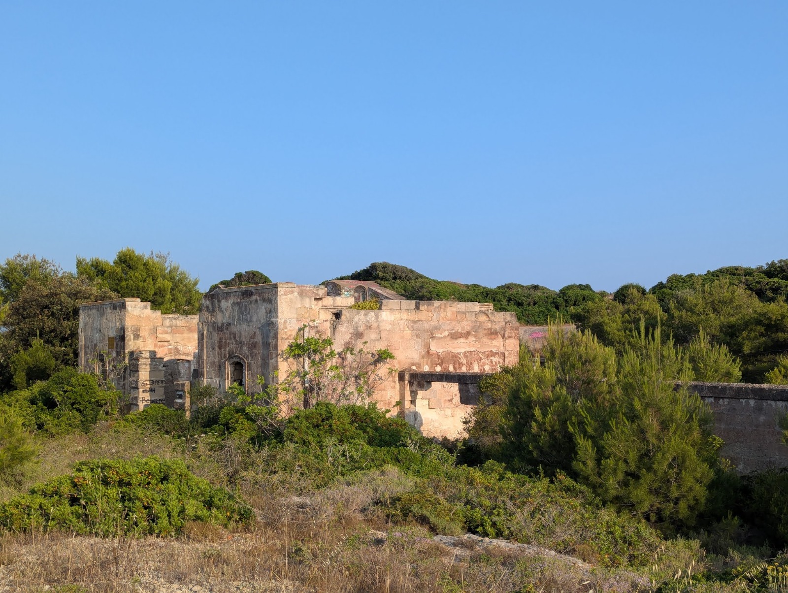L’interno della struttura non è stato oggetto di sopralluogo, ma la presenza di crepe visibili sulla copertura e sui portali d’ingresso lascia presagire possibili criticità strutturali. Sono inoltre riscontrabili alterazioni dovute al degrado, tra cui esfoliazioni, incrostazioni e numerose scritte vandaliche.