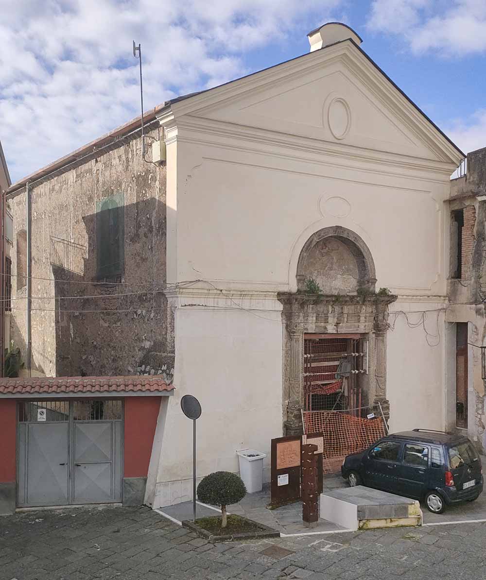 La chiesa di San Giorgio Martire, oggi sconsacrata, è menzionata solo a partire dal XVI secolo, quando inizia ad essere ricordata nelle Sante Visite e in seguito richiamata nella Nolana ecclesiastica storia di Gianstefano Remondini (1747). L’impianto originario dell’edificio, a navata unica, ha abside semicircolare e nicchie laterali, dovrebbe risalire ad un’epoca di molto anteriore, forse al XII o XIII secolo. Ad epoca rinascimentale si data il portale, in piperno articolato con semicolonne sormontate da capitelli corinzi a sostegno di una trabeazione modanata, sormontata da una lunetta che ospita un affresco con san Giorgio, di autore ignoto del XVI secolo. Attualmente la chiesa è in stato di abbandono e ne è previsto un restauro da realizzarsi nell’ambito dei finanziamenti del PNRR.