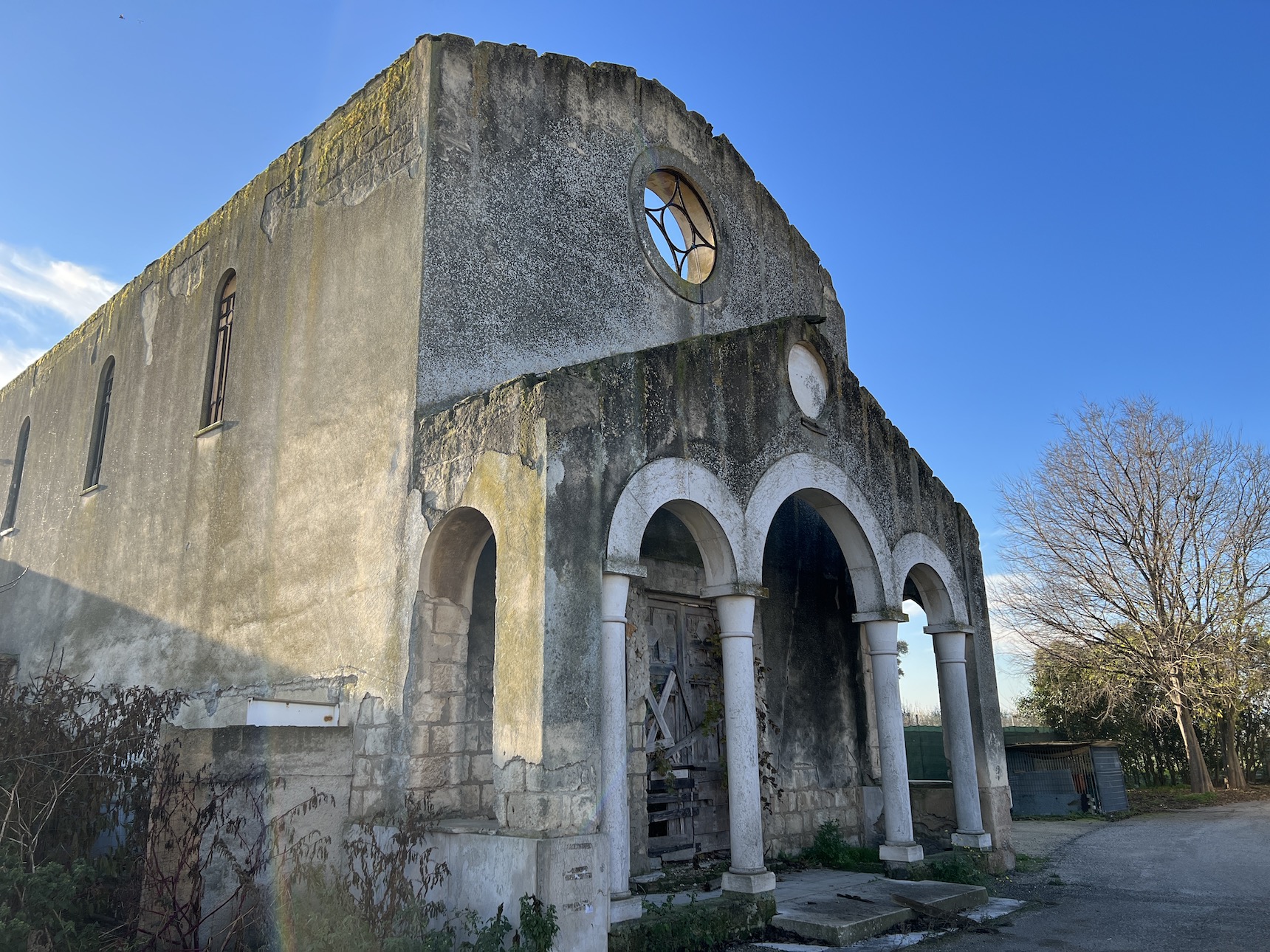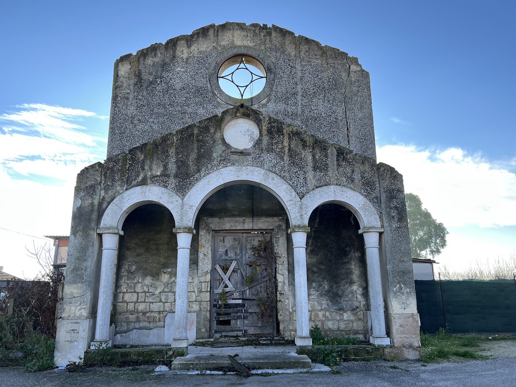 L’edificio è oggi abbandonato, il tetto è crollato e la vegetazione spontanea ha invaso la navata della chiesa.