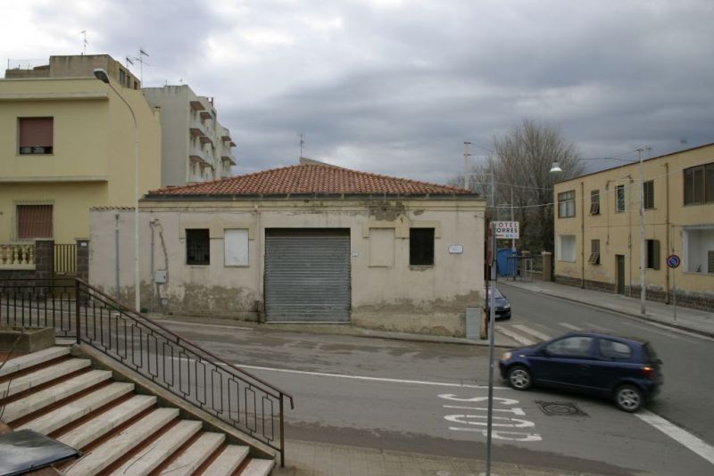 Il prospetto su via Sassari presenta tre ingressi rialzati rispetto al livello stradale da gradini e piccole finestre sormontate da cornice spezzata squadrata, nonché un coronamento centrale geometrico con targa identificativa. Il prospetto su via Balai presenta invece una apertura con serranda metallica; è presente una finitura superficiale con intonaco e tinteggiatura con fenomeni di degrado diffusi.