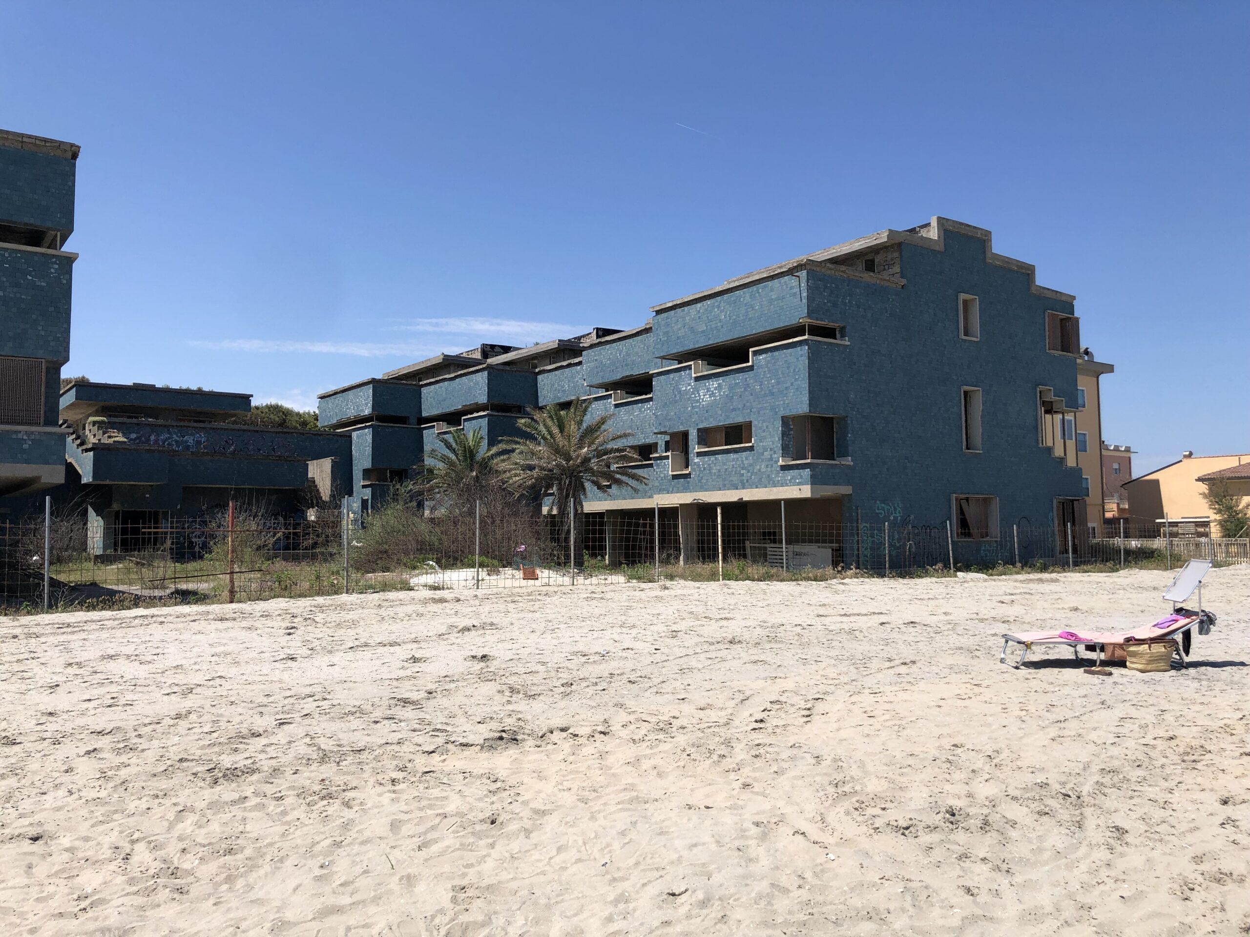 La Colonia, attualmente in stato di abbandono, non ha subito trasformazioni edilizie di rilievo, conservando le caratteristiche architettoniche, generali e di dettaglio, originali. Fra queste emerge soprattutto il rivestimento in piastrelle di colore azzurro turchino, assai adatte alla conservazione delle murature in ambiente soggetto all’aggressione degli agenti atmosferici marini, e che risulta solo a tratti aver ceduto al trascorrere del tempo. Anche le superfici in cemento a vista risultano solo parzialmente intaccate. Integra è la sequenza, dinamica ed espressiva, delle cornici che rimarcano le aperture ed i limiti dei piani e delle terrazze, con i dettagli, assai raffinati, degli aggetti angolari posti agli spigoli dell’edificio e delle piegature ad angolo retto alla base delle finestre, emergendo solo in alcuni tratti il ferro delle armature per il cedimento dello strato di protezione.
