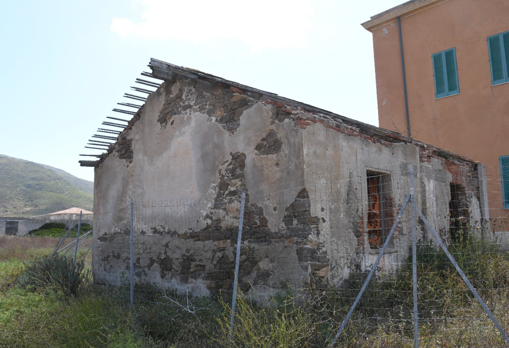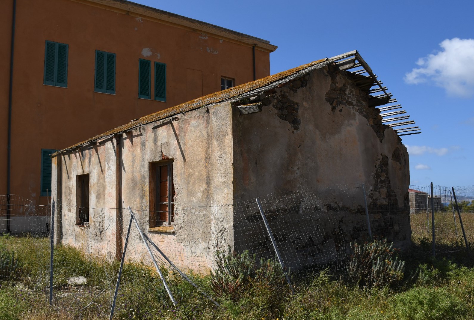 Il fabbricato dell’ex guardiania fa parte del complesso dell’ex stazione sanitaria marittima situata nell’area di La Reale nel territorio del Parco Nazionale dell’Asinara. L’edificio è di dimensioni contenute però caratterizzato da alcuni elementi architettonici e finiture un poco più ricercate, come ad esempio nell’intonaco, delle cornici a motivi geometrici lineari in sopra squadro. Costituito da un solo piano fuori terra, la struttura portante è in muratura di pietrame vario di piccola pezzatura e malta a base di calce, con alcune parti in mattone laterizio. La copertura a due falde ha struttura lignea sulla quale poggiano lastre romboidali piane in fibrocemento; all’interno si conserva parte del controsoffitto in camorcanna. La superficie coperta complessiva è di 53,19 mq.