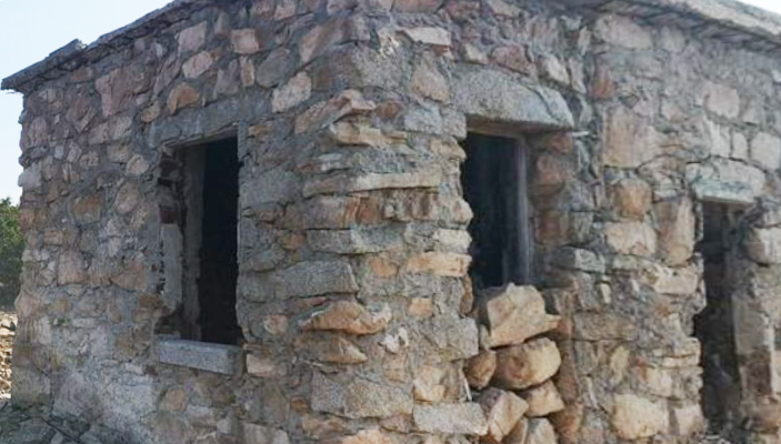 L’edificio, consistente in un piano fuori terra, misura circa 70 mq ed è costruito in muratura in pietrame di granito di pezzatura piuttosto irregolare, talvolta appena sbozzato. Gli architravi sono in cemento armato o in unico concio di granito. Le aperture sono prive di infissi, talvolta minimamente tamponate con posa di pietrame priva di malta. L’articolazione interna del fabbricato prevede tre ambienti interni interconnessi ed un ambiente accessibile unicamente dall’esterno. La copertura è piana, in calcestruzzo armato.