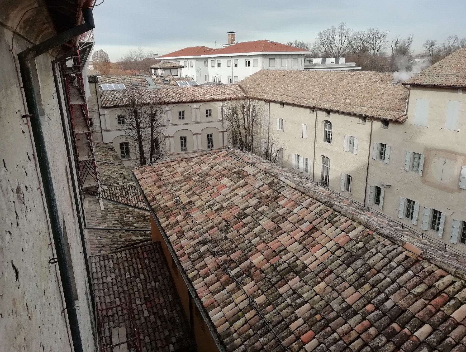 Sotto Maria Luigia gli ultimi interventi rilevanti: 1843 trasformazione del fabbricato S-O in Convento delle Suore della Carità di San Vincenzo. L’edificio che ne deriva, su progetto di Nicola Bettoli, è di notevoli dimensioni, a tre piani, con lato prospettante su Via D’Azeglio concepito come fronte di scorrimento, dove i timpani fungono da cesura del corpo di fabbrica. All’interno, le trasformazioni del Bettoli sono limitate ad alcuni ambienti (Sala delle Colonne) e al disegno delle librerie. All’inizio del Novecento l’Ospedale, gravemente dissestato, cessa di avere funzioni sanitarie e ospita l’Archivio di Stato oltre a biblioteche e associazioni culturali dopo l’acquisto da parte del Comune di Parma (1928).