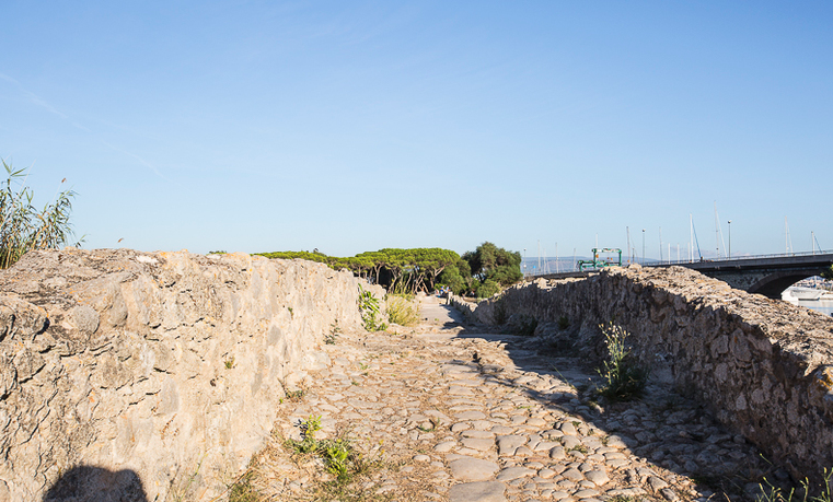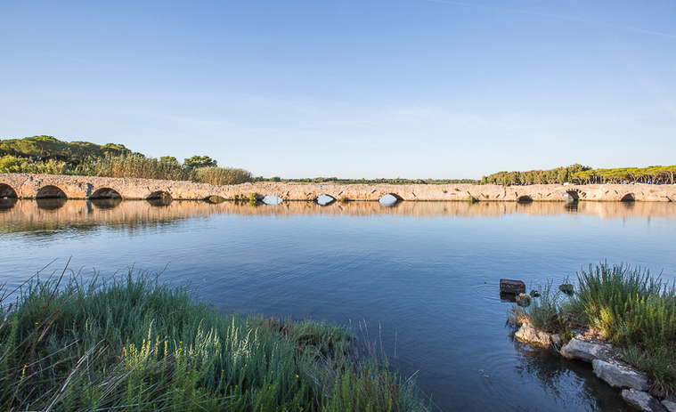 Il Ponte romano del Calich si trova sul tracciato di epoca romana che da Santa Teresa di Gallura passava per Porto Torres e giungeva verso il Sulcis. Il ponte ha subito un impegnativo restauro in epoca medievale e dei successivi rimaneggiamenti, rimanendo integro fino al 1930, anno in cui vennero demolite dieci arcate durante la bonifica della zona ad opera dell’E.F.T.A.S. Nei primi anni duemila il ponte si presentava come una sommatoria di elementi scomposti che richiesero una campagna di restauri finalizzati innanzitutto alla conservazione del rudere attraverso il consolidamento delle parti superstiti e la ricostruzione limitata alle parti mancanti necessarie per assicurare la statica d’insieme. Un ultimo intervento ha riguardato la progettazione di un sistema di illuminazione consono ed il divieto di ormeggio per assicurare la tutela. Ad oggi si conservano 13 delle 24 arcate originali apparecchiate ad opus incertum, per una lunghezza totale di 105 metri.