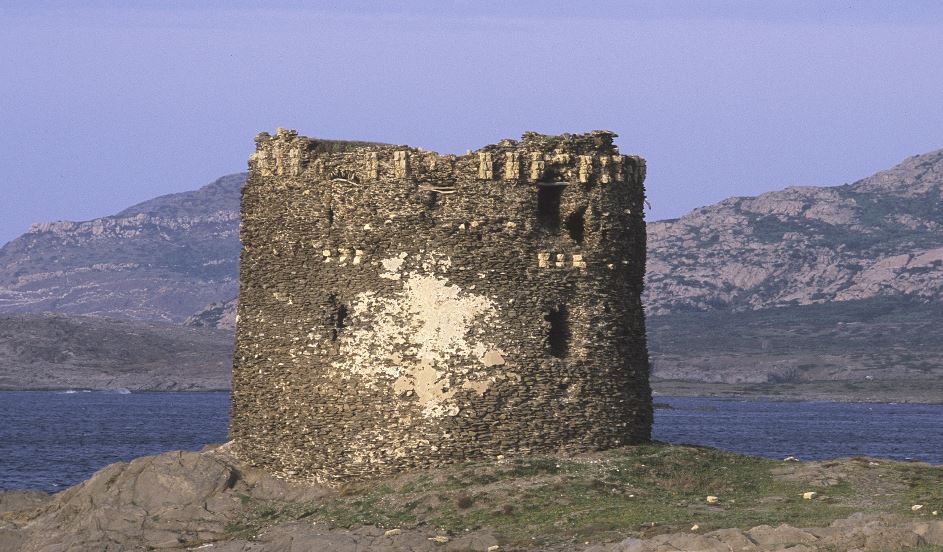 La Torre della Pelosa, del tipo torre “de armas”, faceva parte di un sistema difensivo militare costituito da: “Torre Piana” nell’isola Piana e da tre torri nell’isola dell’Asinara, “Torre del Trabucato, Torre di Cala D’Oliva e Torre di Cala D’Arena”. Di forma troncoconica con pianta circolare, presenta un diametro alla base di 16,00 m. e un’altezza di 10,00 m. muratura in scisto con uno spessore di 2,50 m. L’ingresso è collocato a 6,00 metri dal suolo e conduce ad una sala divisa in tre vani, ognuno dei quali dotato di feritoia, con un pilastro centrale che sorregge la volta a fu. Ricavata nello spesso murario una scala conduce alla terrazza sovrastante. Venne dismessa nel 1846.