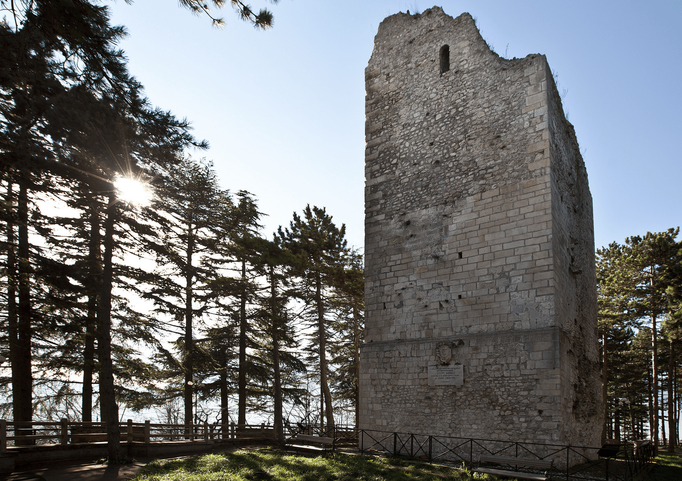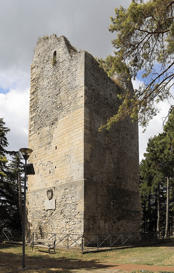 Le fonti tramandano che dopo il 1849, a seguito della demolizione di tratti di mura e torri, si procedette alla sistemazione del Largo del Rosario (oggi Largo Garibaldi). Fu atterrata la maggior parte dei recinti del castello, furono rimossi i ruderi del muro che chiudeva dalla parte di nord-ovest, e venne interamente colmato il fossato di protezione. Rimase la torre che per dimensioni e struttura è una delle più grandi e porta i segni di costruzione del X e XI secolo, ossia all’epoca in cui avvennero le invasioni dei Saraceni e degli Ungari. La torre costituirebbe l’antico presidio militare longobardo dal quale, secondo la tradizione, ebbe origine il primo nucleo fortificato della città.